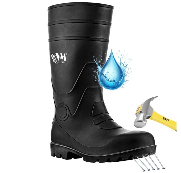 Kalosze gumowce robocze OSAKA S5 to certyfikowane obuwie ochronne zaprojektowane do pracy w środowisku o wysokim stopniu wilgotności i zanieczyszczeń. Te kalosze robocze z metalowym noskiem gwarantują mechaniczną ochronę palców przed uderzeniami oraz zabezpieczają podeszwę przed przebiciem. Konstrukcja z mieszanki PVC i nitrylu zapewnia pełną wodoszczelność oraz odporność na działanie olejów napędowych.