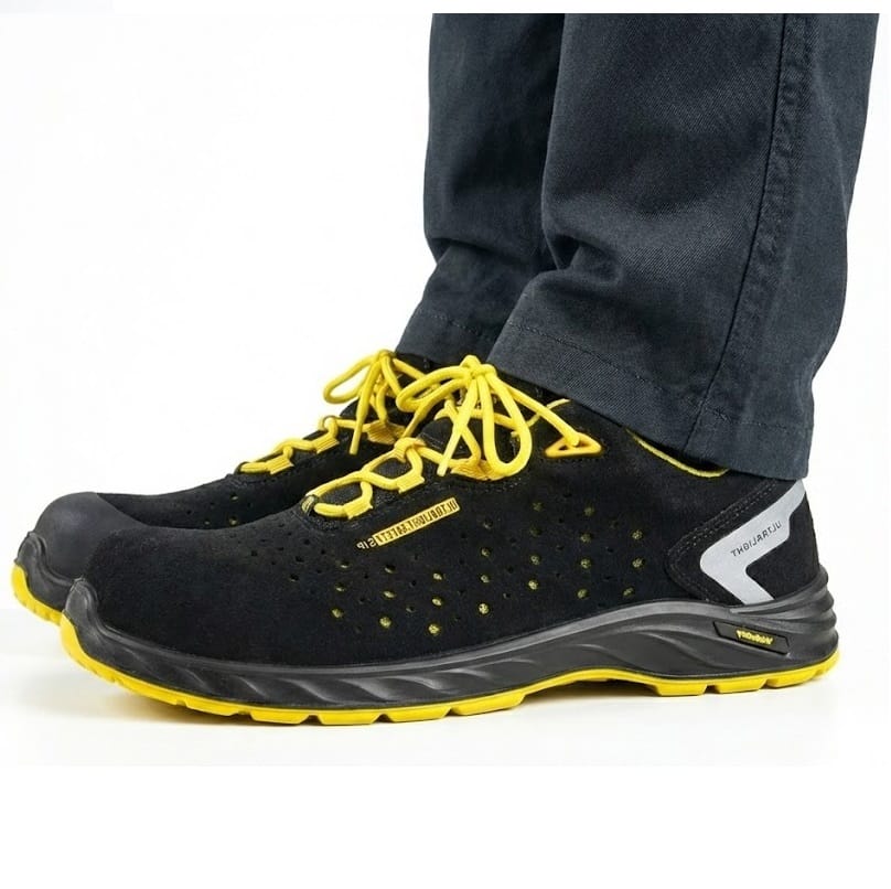 - Podeszwa antypoślizgowa SR z dwuwarstwowego poliuretanu zapewnia stabilność na śliskich powierzchniach 🏗️