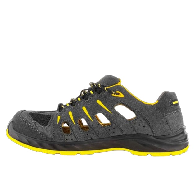 Sandały robocze BILBAO S1 to ergonomiczne obuwie ochronne zaprojektowane dla profesjonalistów wymagających wentylacji i bezpieczeństwa. Te sandały robocze z blachą (w tym modelu zastąpioną zaawansowanym, lżejszym podnoskiem kompozytowym) gwarantują ochronę palców przed uderzeniami, zachowując przy tym niską wagę. Konstrukcja cholewki ze szlifowanej skóry bydlęcej welurowej zapewnia trwałość w warunkach przemysłowych.