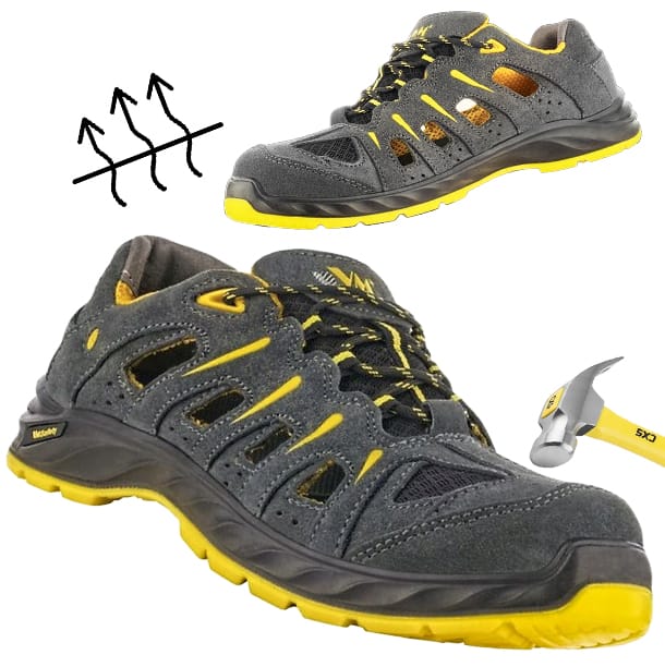 - ⚙️ Wentylacja i termoregulacja: Laminowana, oddychająca tkanina MESH zapobiega przegrzewaniu stopy, co sprawia, że są to optymalne buty do pracy na lato.